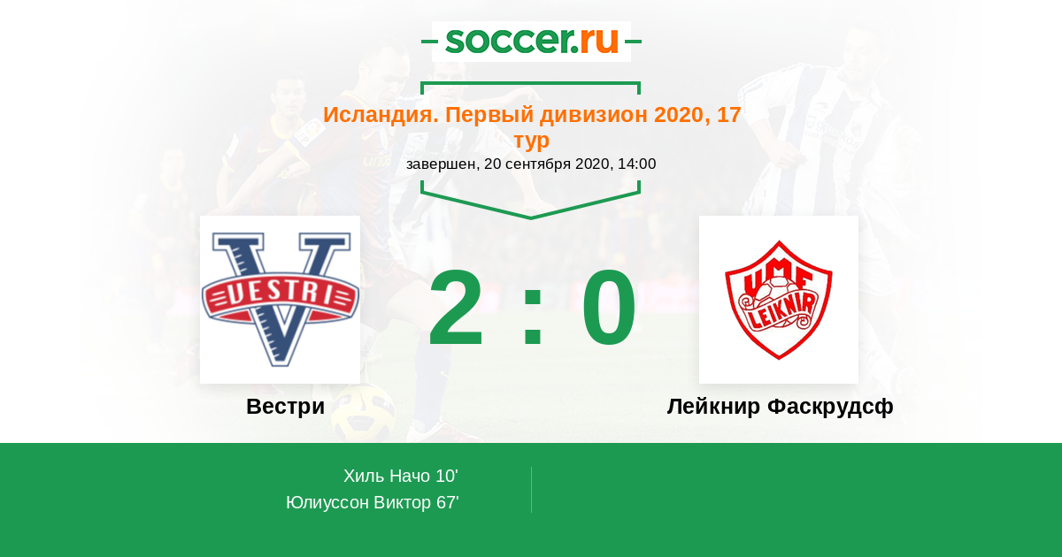 Протокол матча Вестри против Лейкнир Фаскрудсф