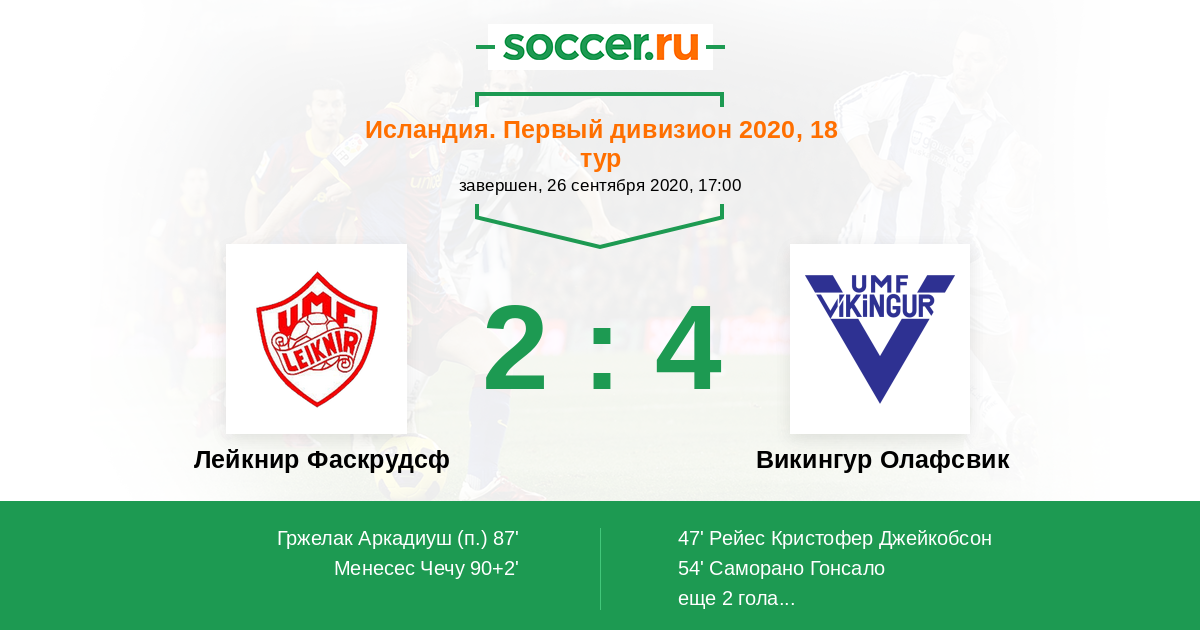 Протокол матча Лейкнир Фаскрудсф против Викингур Олафсвик