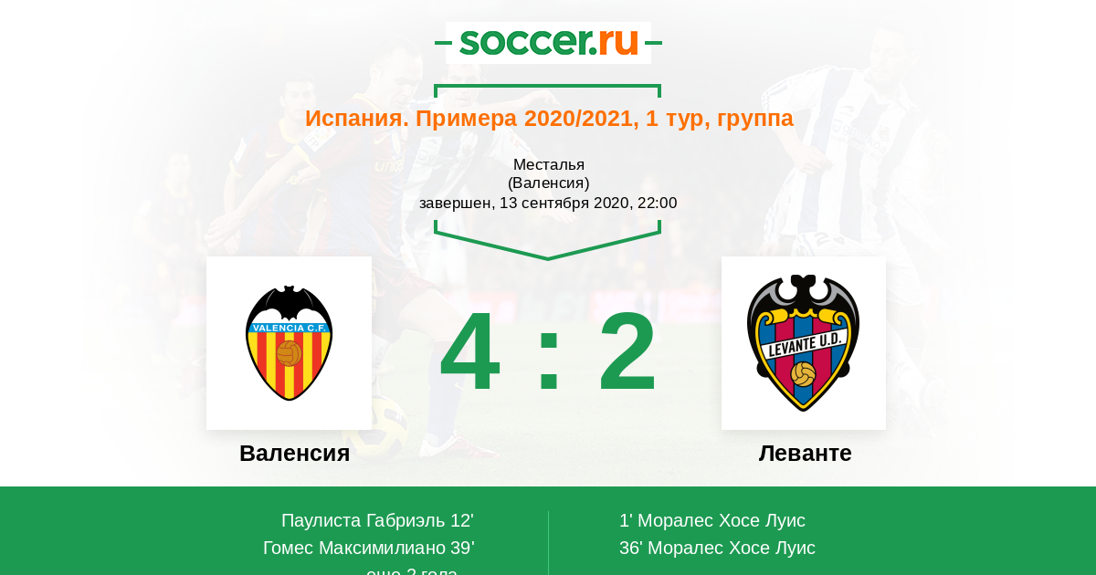 «Валенсия» не потерпела ни одного поражения в 5-ти последних встречах с «Леванте»;
