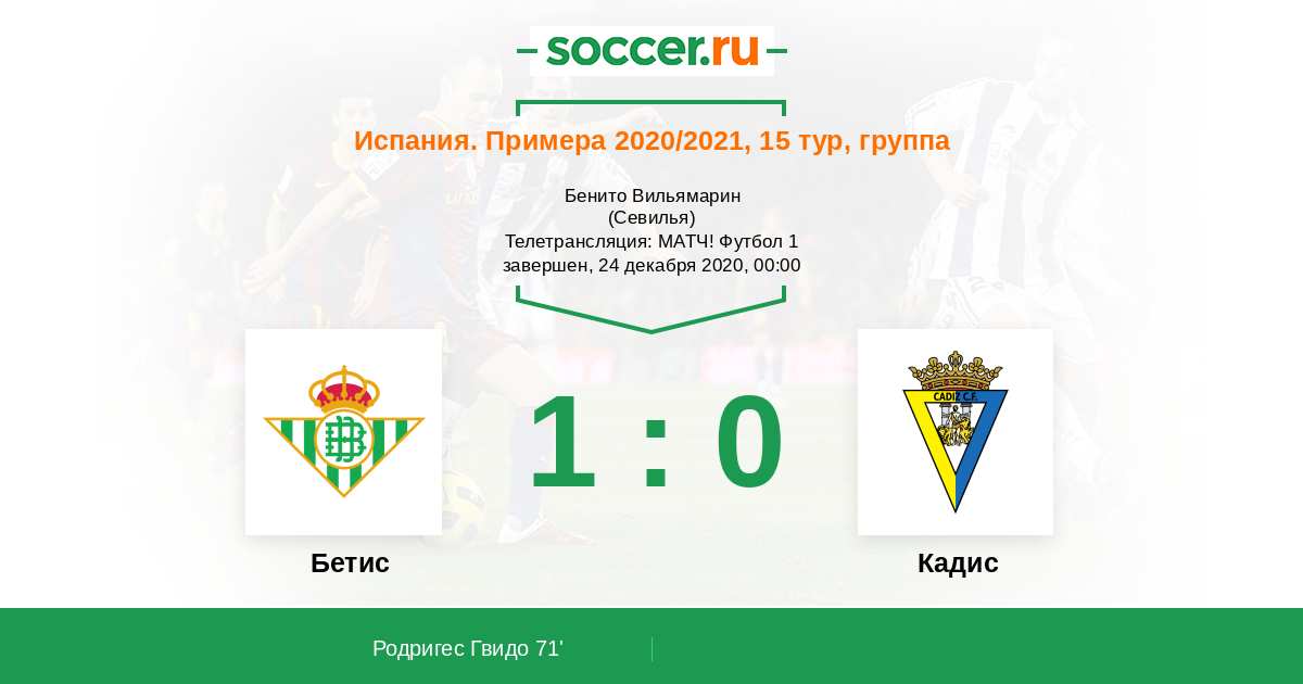 Протокол матча Бетис против Кадис