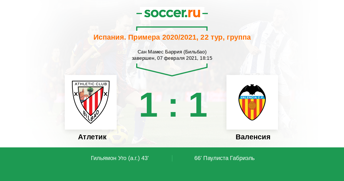 Протокол матча Атлетик против Валенсия