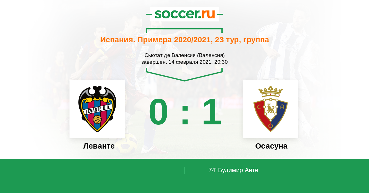 Протокол матча Леванте против Осасуна