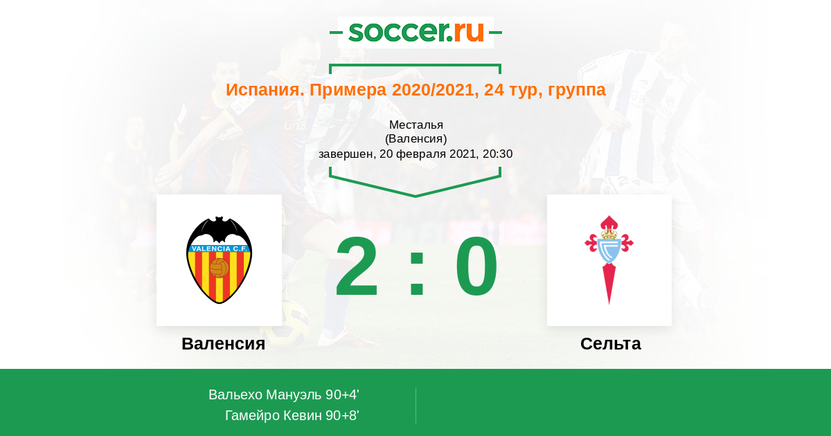 Протокол матча Валенсия против Сельта