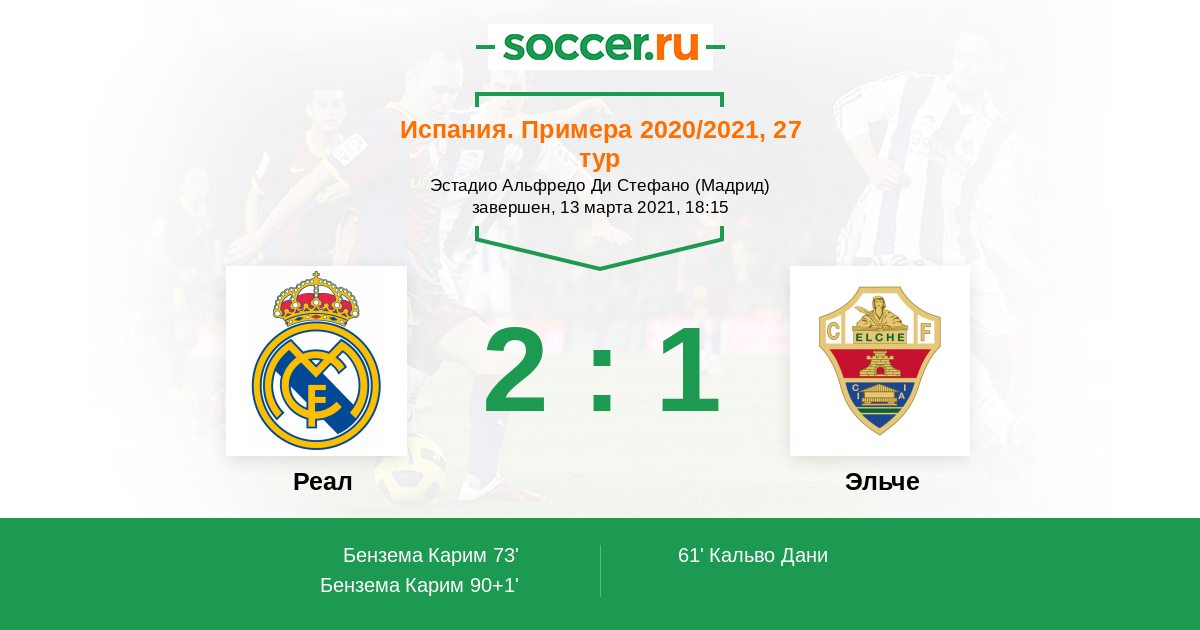 90+1' (2:1) Бензема Карим (9) (Родриго Силва (25))