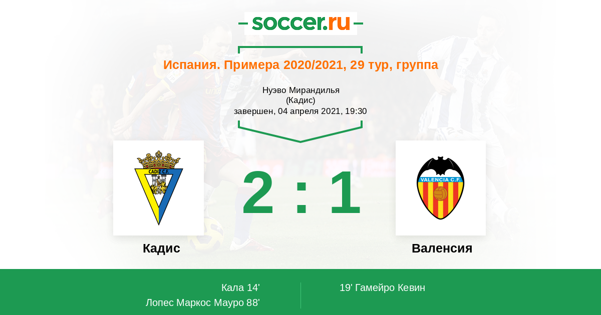 Протокол матча Кадис против Валенсия