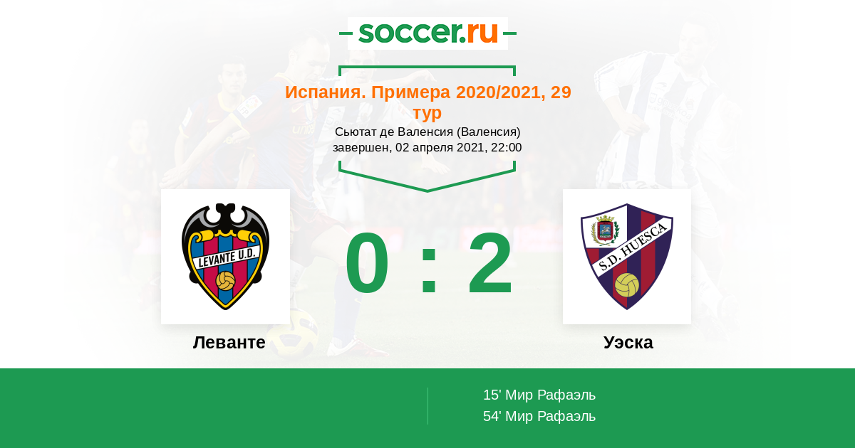 Протокол матча Леванте против Уэска