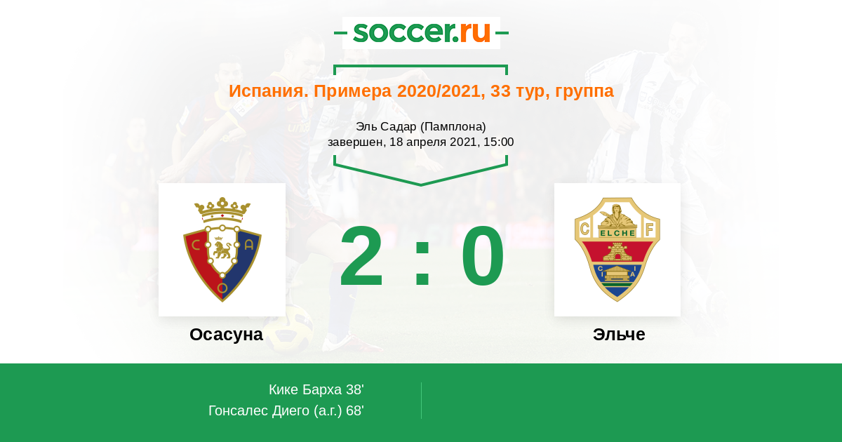 Протокол матча Осасуна против Эльче