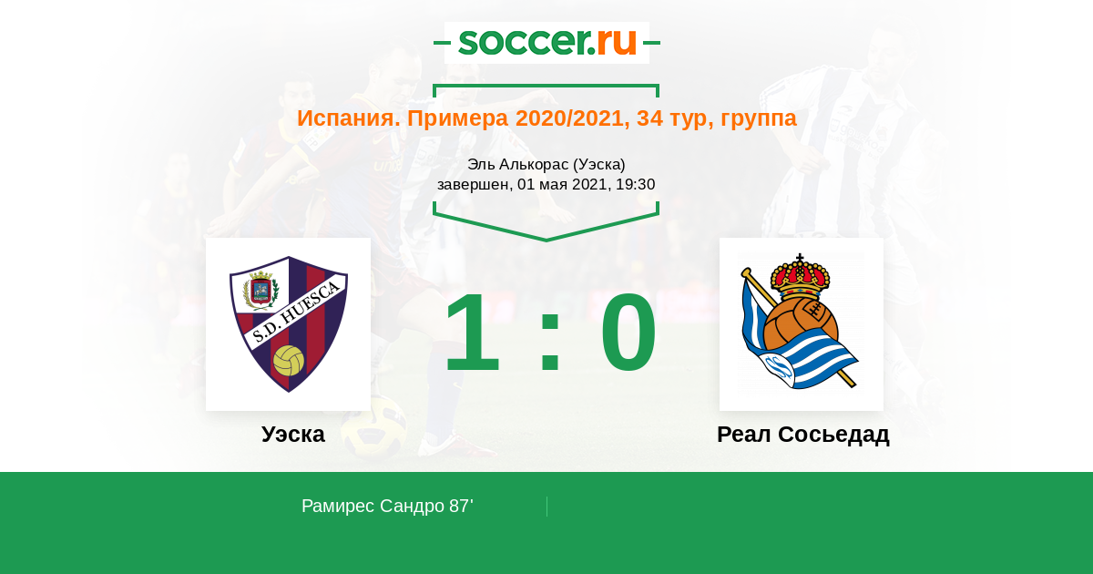 Протокол матча Уэска против Реал Сосьедад