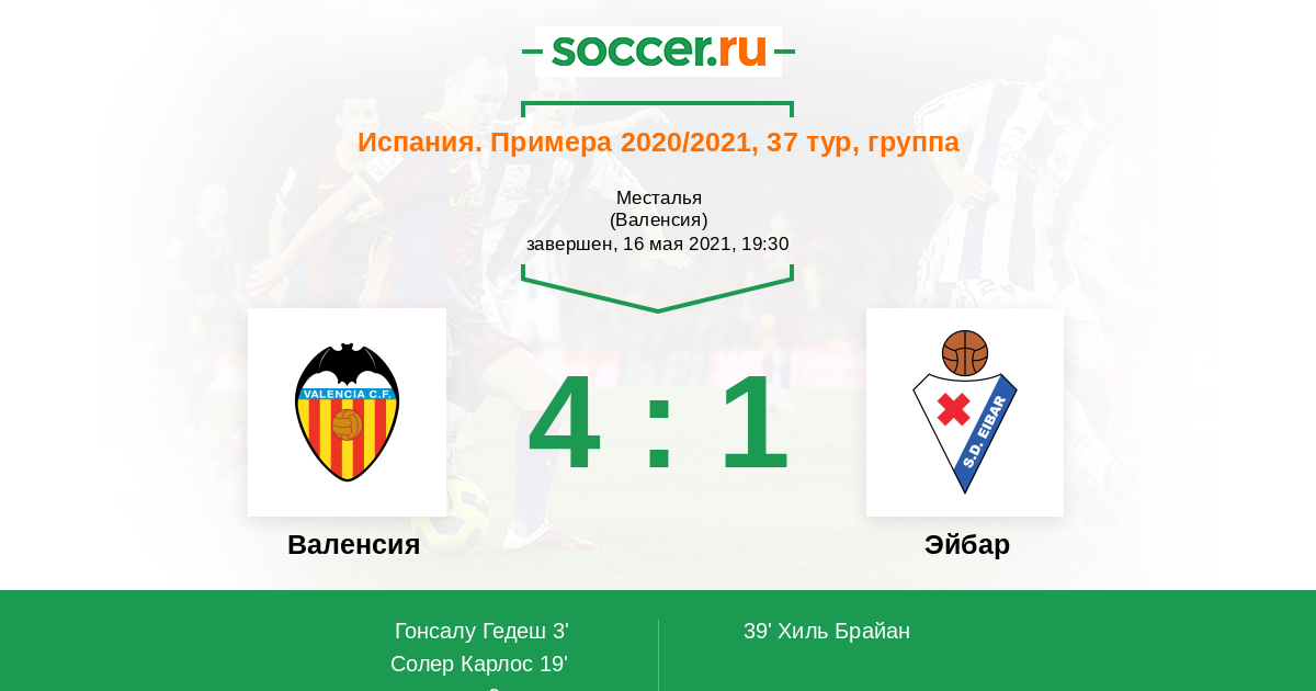 Протокол матча Валенсия против Эйбар