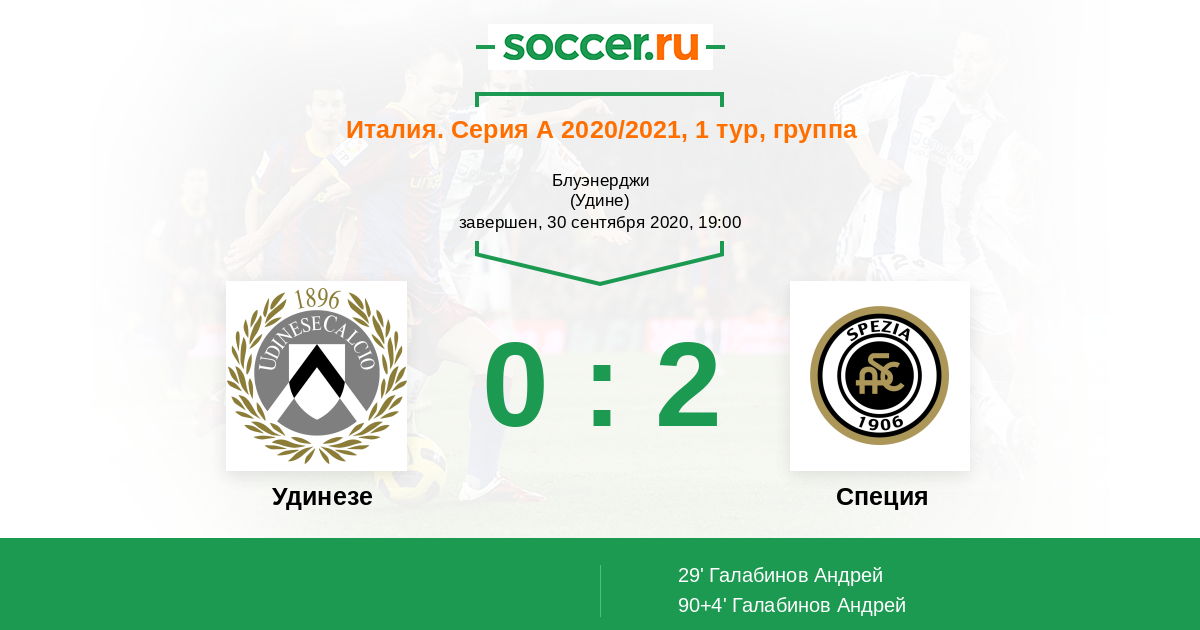 Протокол матча Удинезе против Специя