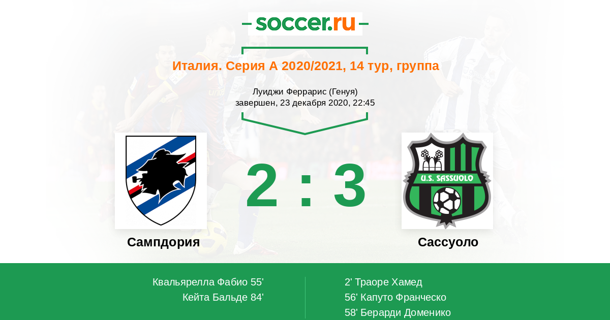 Протокол матча Сампдория против Сассуоло