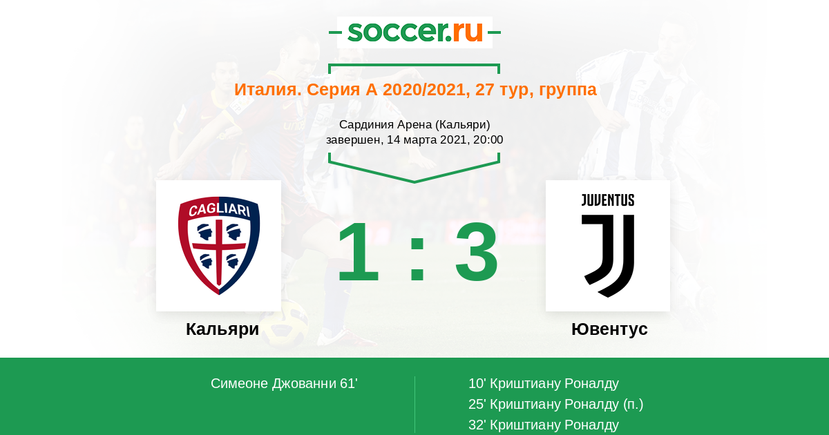 Слабый Кальяри, во втором тайме возит сильный Ювентус!