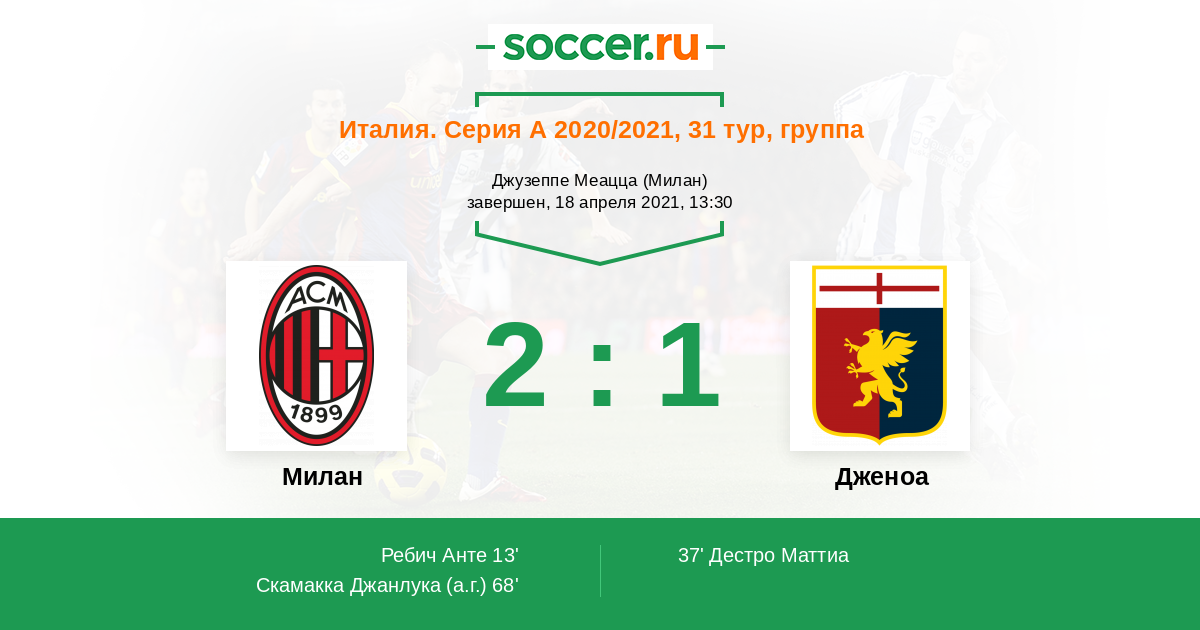 68' (2:1) Автогол Скамакка Джанлука (9)