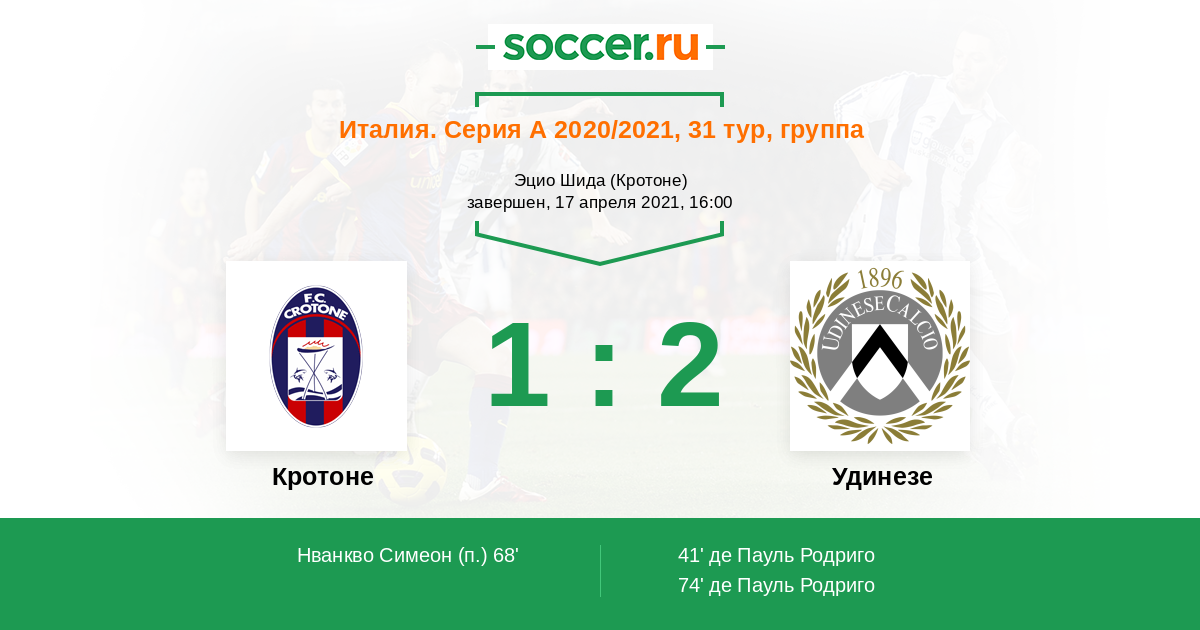 Протокол матча Кротоне против Удинезе