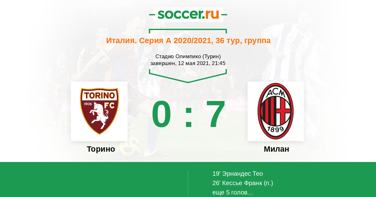 Протокол матча Торино против Милан