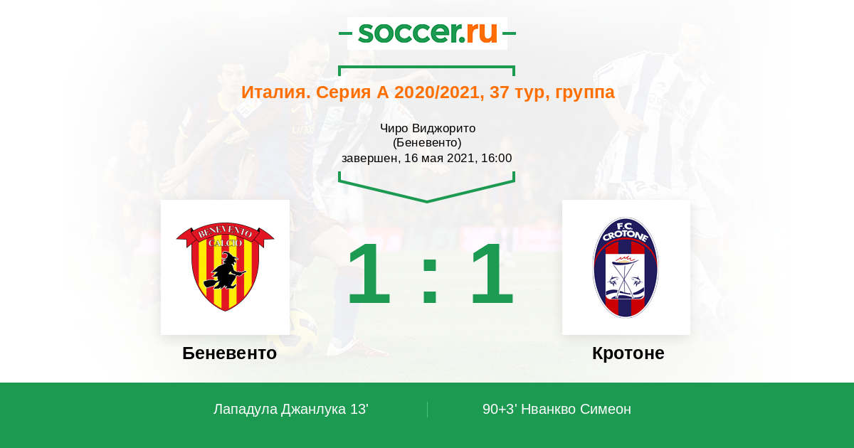 Победа Беневенто или ничья.