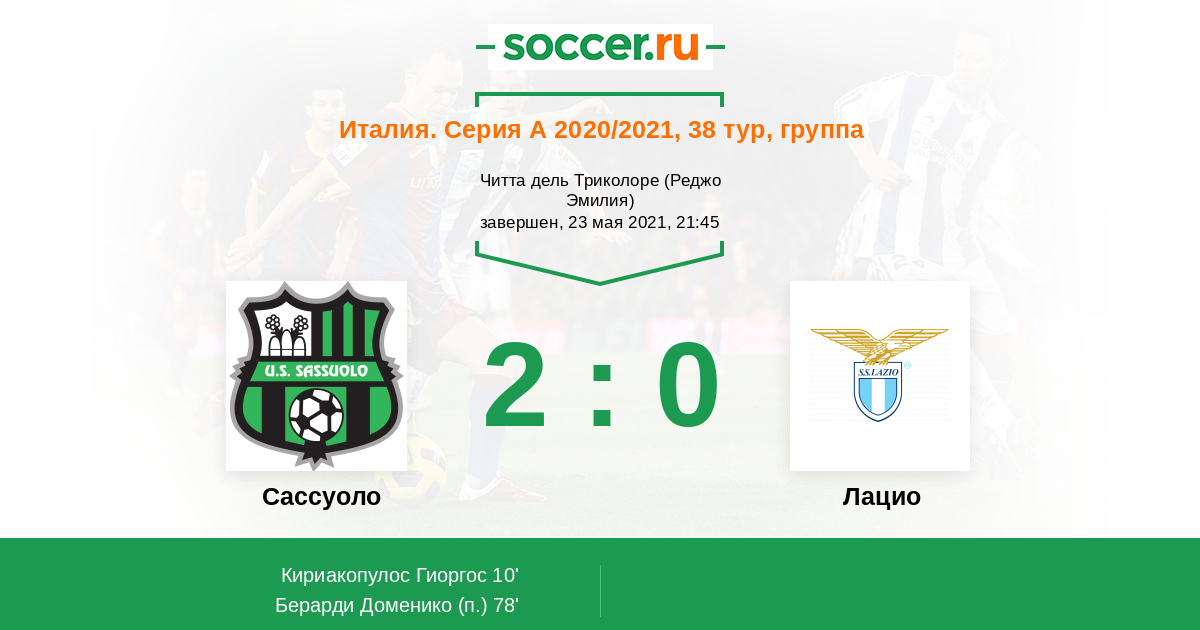 Протокол матча Сассуоло против Лацио