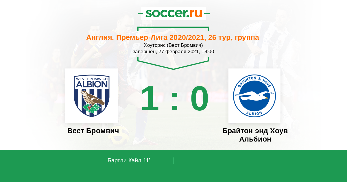 Протокол матча Вест Бромвич против Брайтон энд Хоув Альбион
