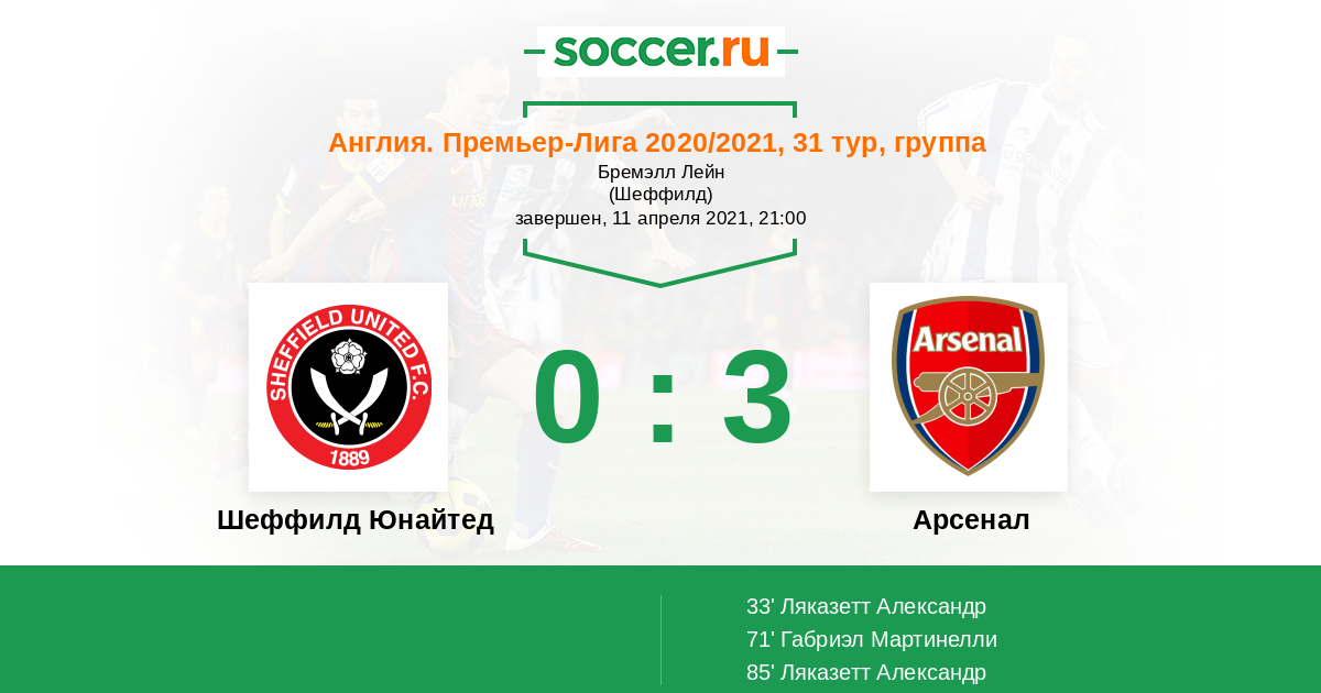 Протокол матча Шеффилд Юнайтед против Арсенал