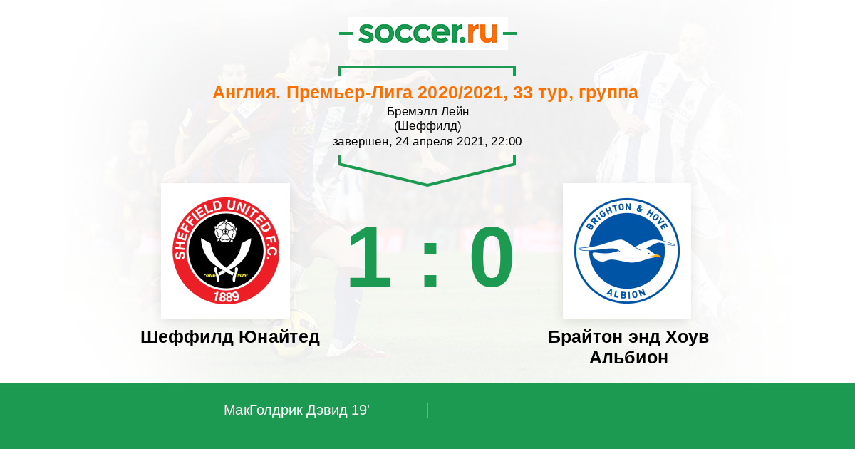Протокол матча Шеффилд Юнайтед против Брайтон энд Хоув Альбион