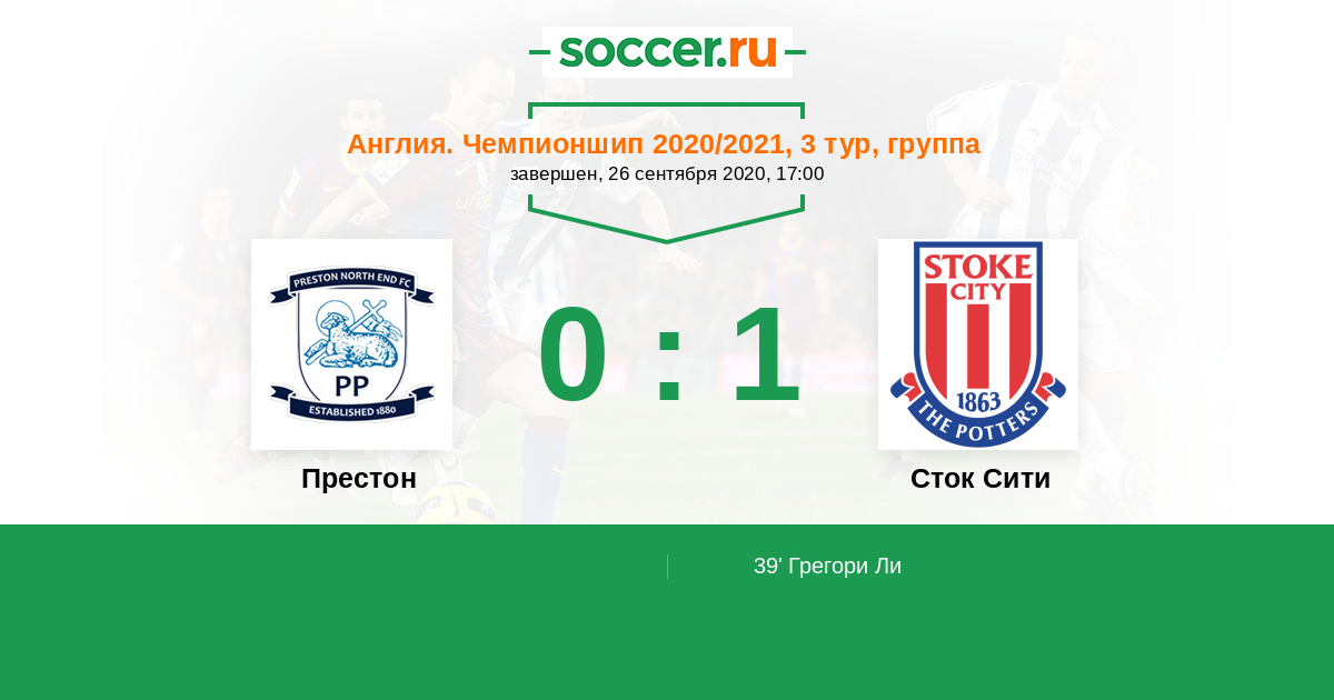 Протокол матча Престон против Сток Сити