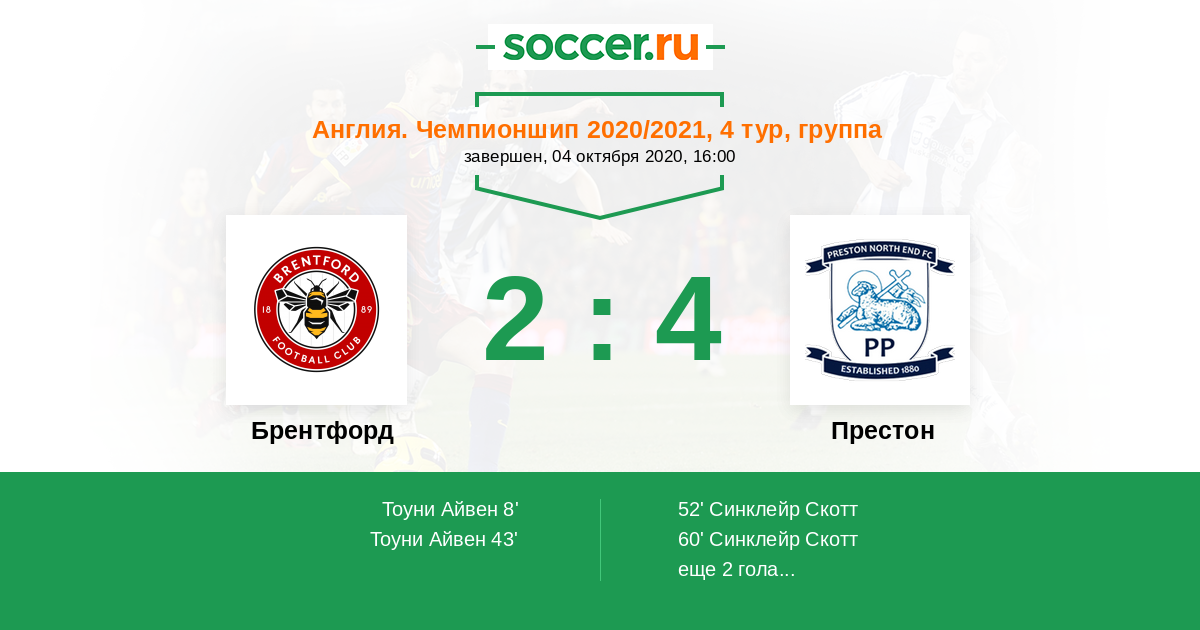 Протокол матча Брентфорд против Престон