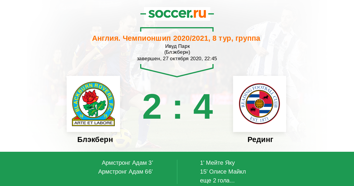 Протокол матча Блэкберн против Рединг