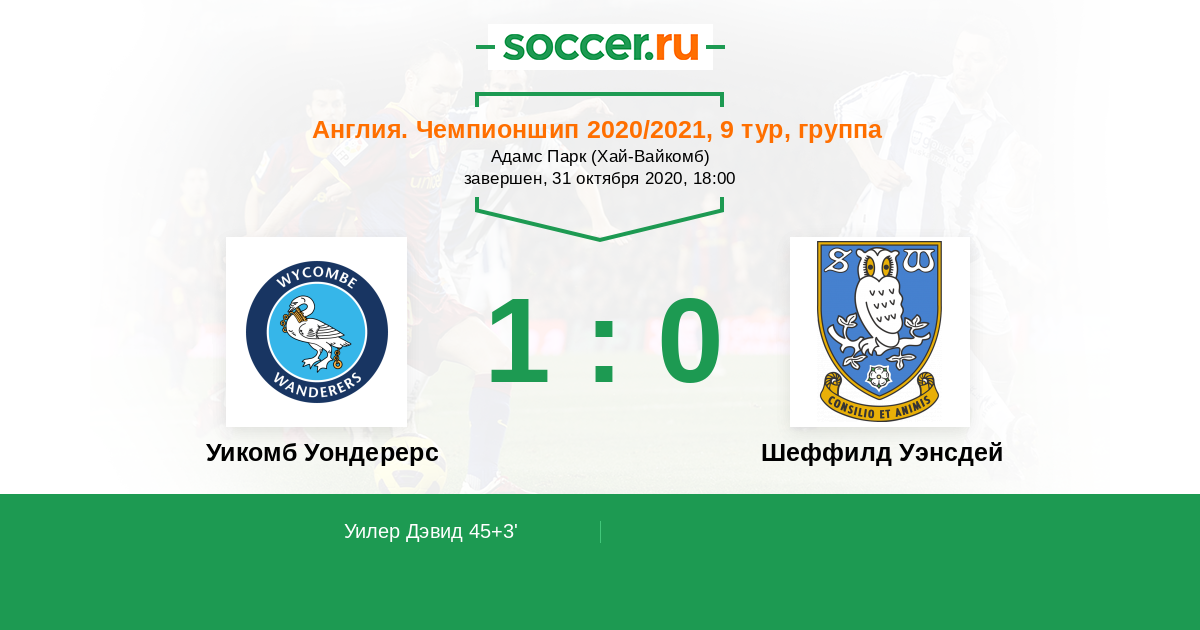 Протокол матча Уикомб Уондерерс против Шеффилд Уэнсдей