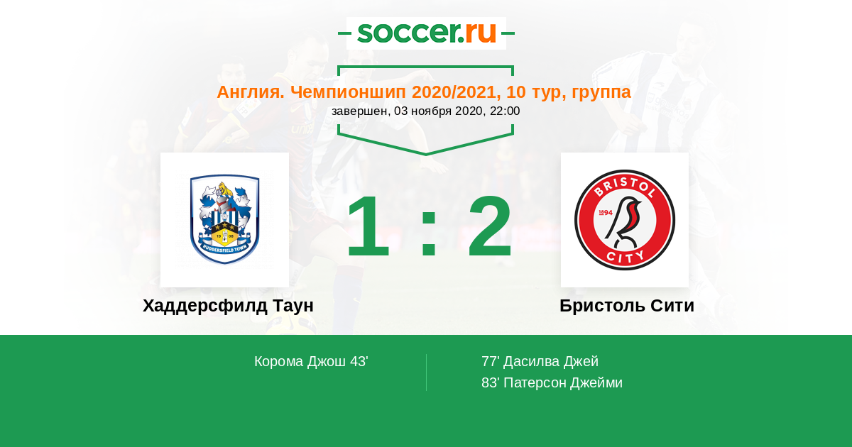 Протокол матча Хаддерсфилд Таун против Бристоль Сити