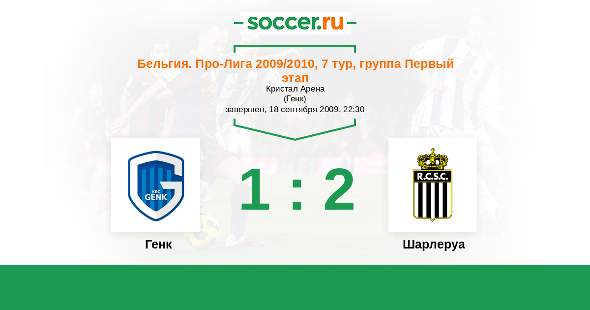 Бельгия. Про-Лига 10.04.2010 Шарлеруа Логотип футбольный клуб Шарлеруа 1:2 Логотип футбольный клуб Генк Генк