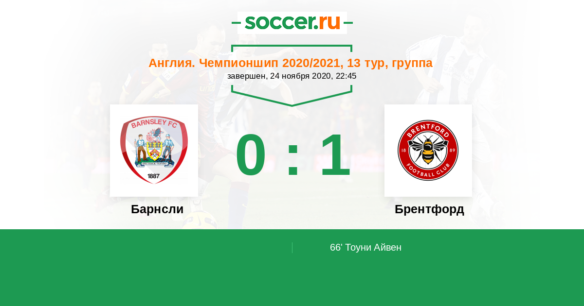 Протокол матча Барнсли против Брентфорд
