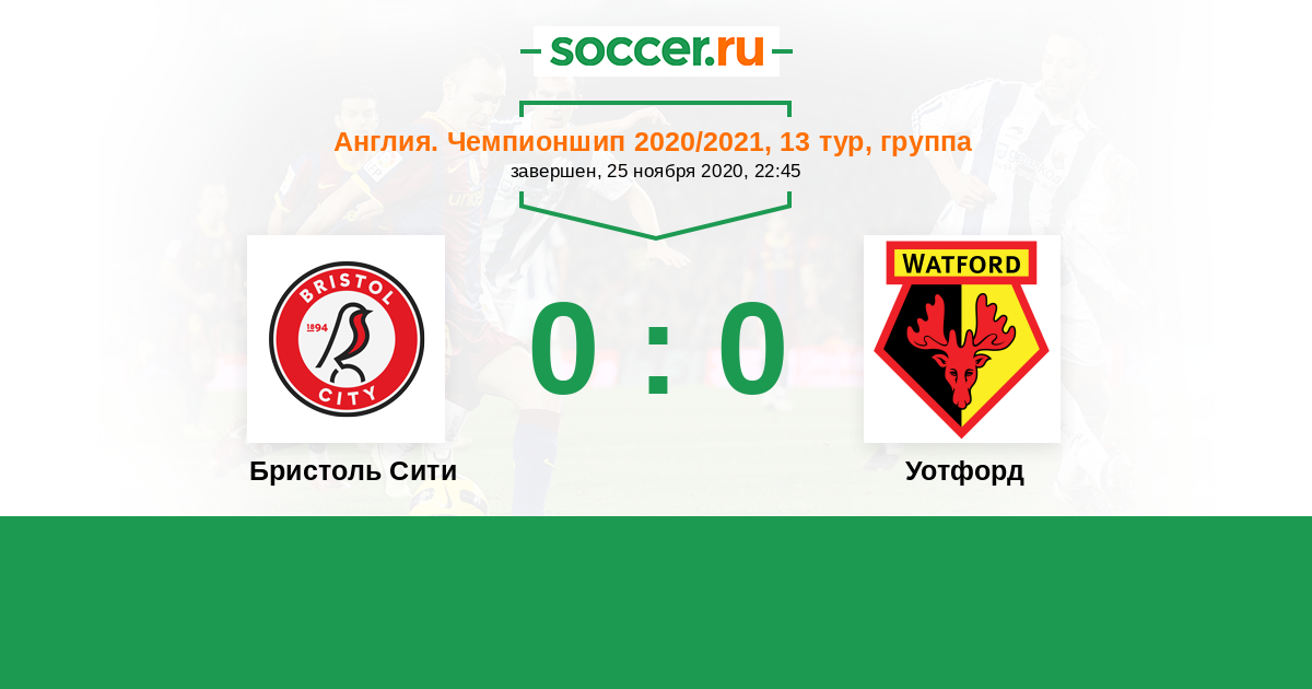 Протокол матча Бристоль Сити против Уотфорд