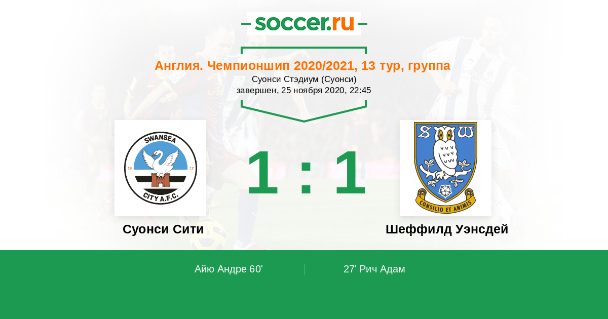 Протокол матча Суонси Сити против Шеффилд Уэнсдей