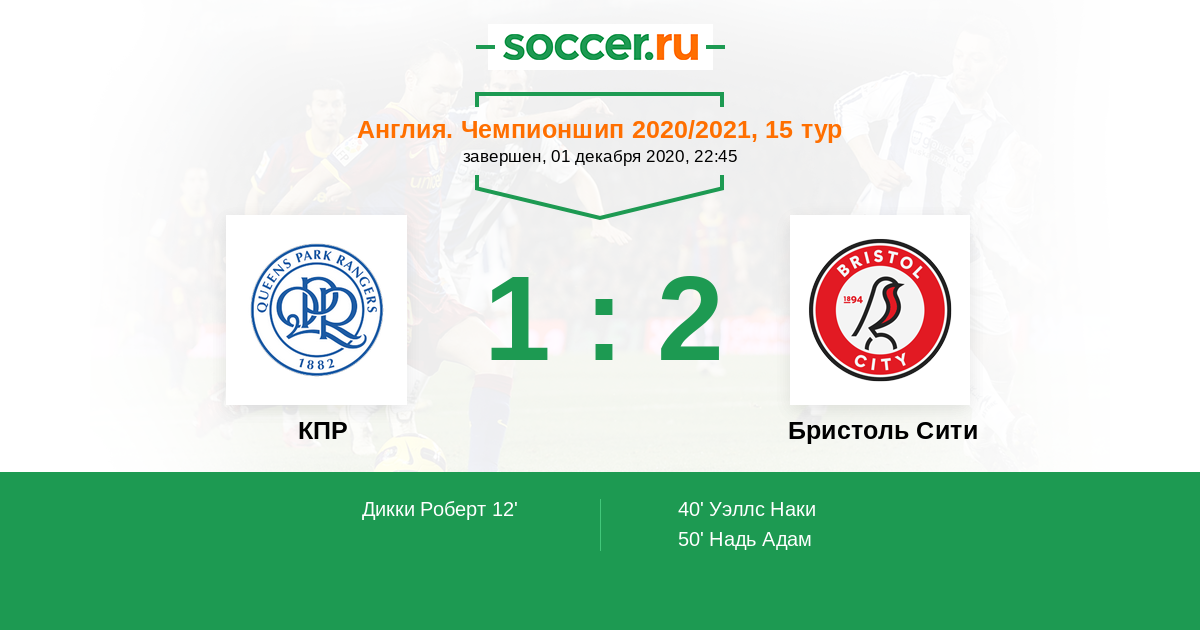 Протокол матча КПР против Бристоль Сити