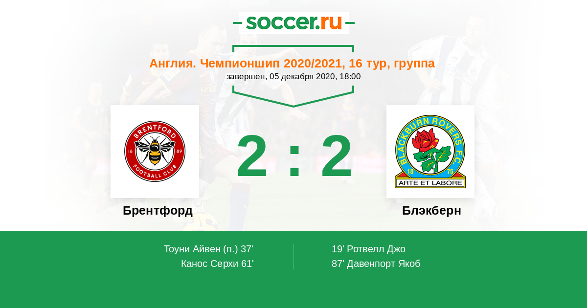 Протокол матча Брентфорд против Блэкберн