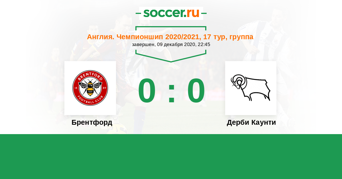 Протокол матча Брентфорд против Дерби Каунти