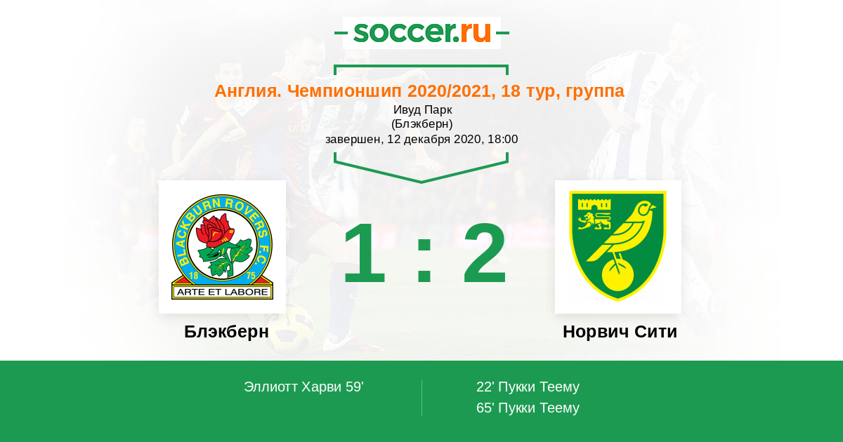 Протокол матча Блэкберн против Норвич Сити
