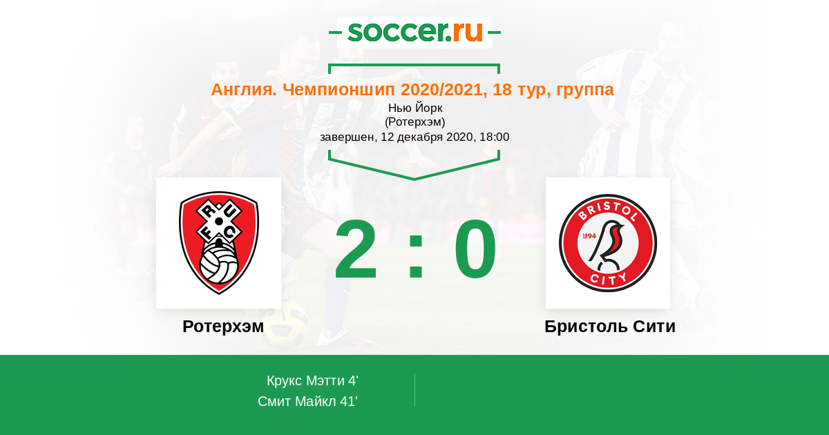 Протокол матча Ротерхэм против Бристоль Сити