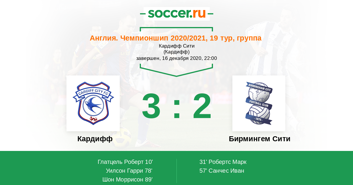 Протокол матча Кардифф против Бирмингем Сити