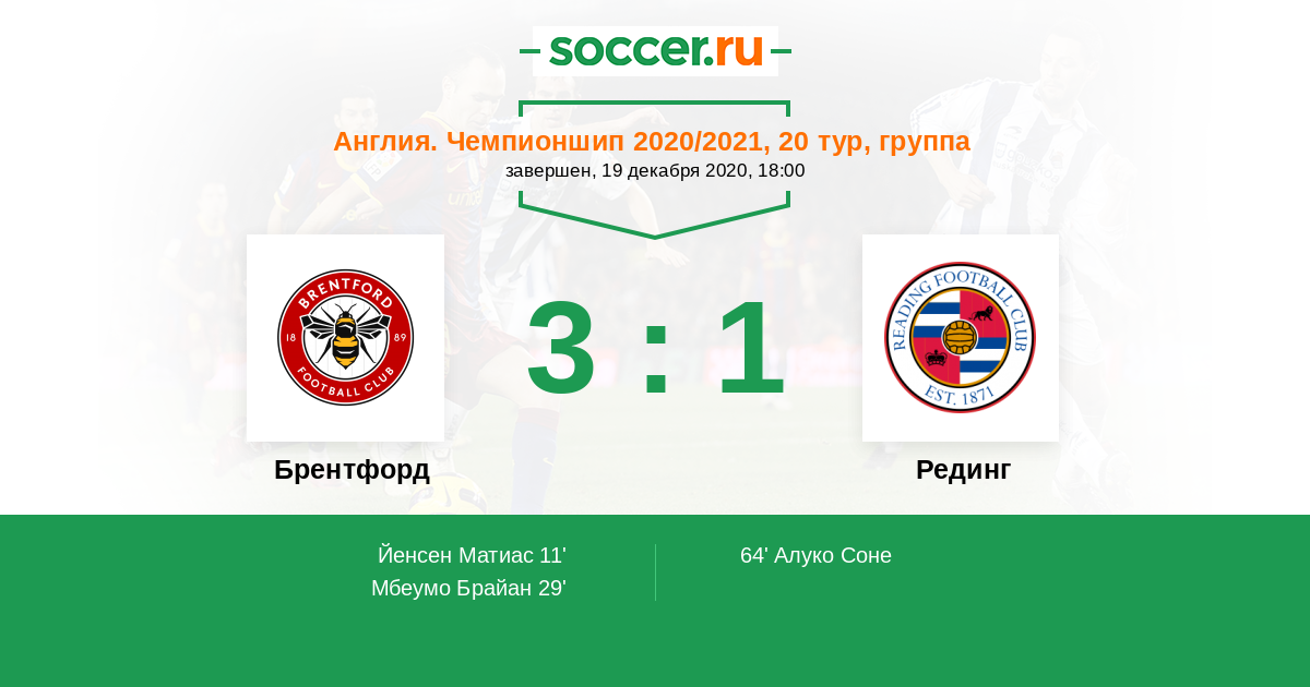 Протокол матча Брентфорд против Рединг