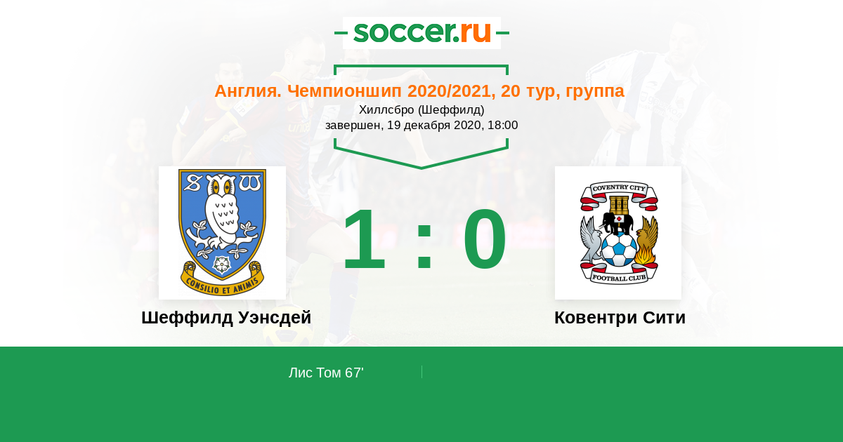 Протокол матча Шеффилд Уэнсдей против Ковентри Сити