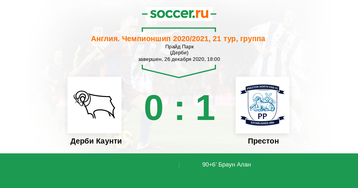 90+6' (0:1) Браун Алан (8) (Джонсон Даниэль (11))