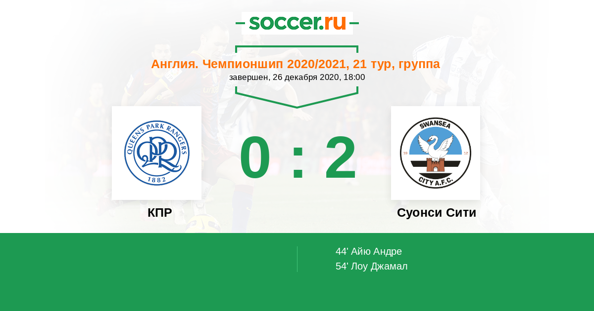Протокол матча КПР против Суонси Сити