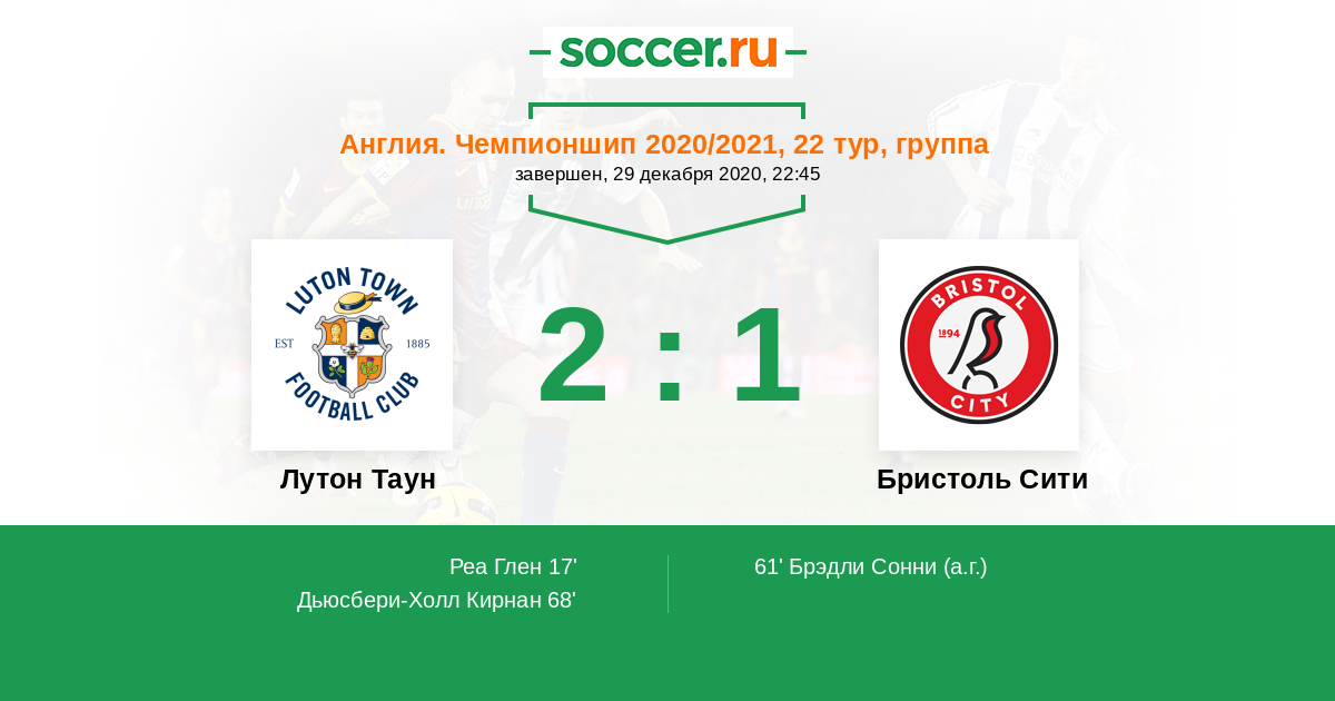 Протокол матча Лутон Таун против Бристоль Сити