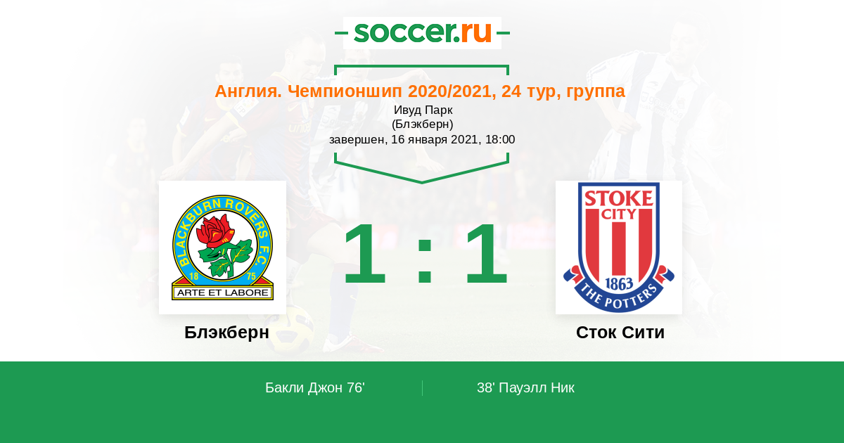 Протокол матча Блэкберн против Сток Сити