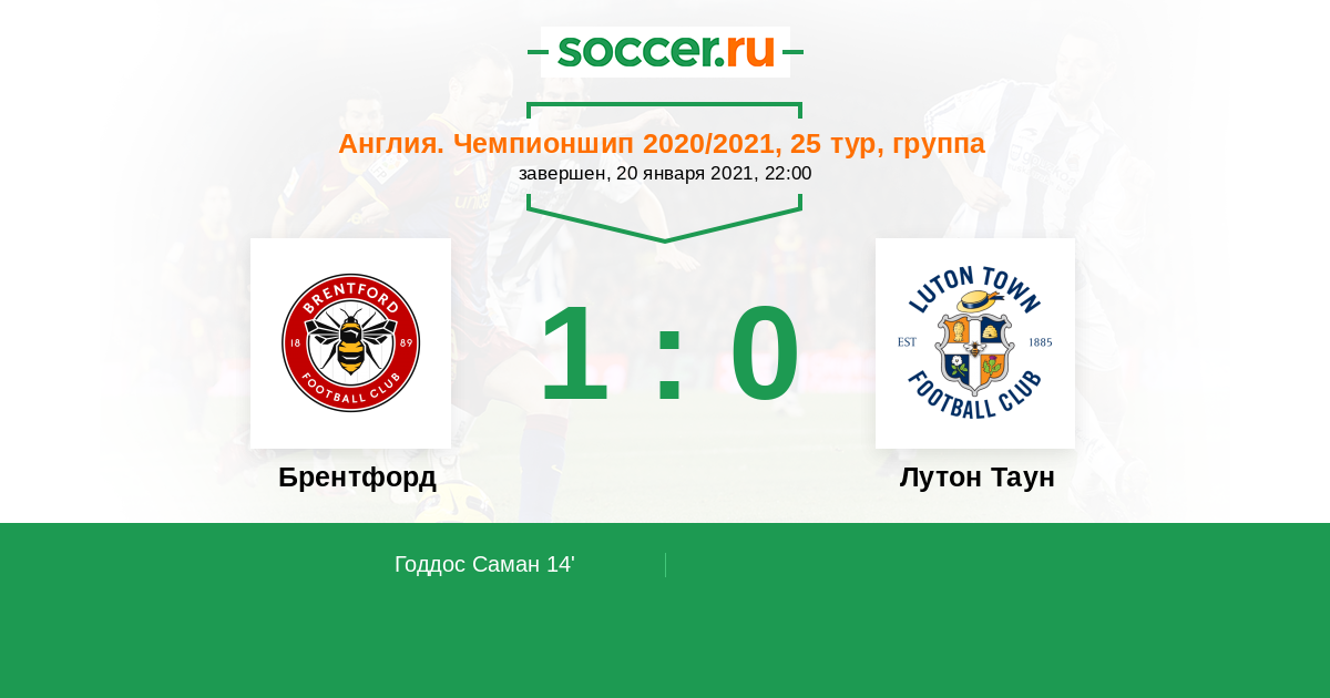 Протокол матча Брентфорд против Лутон Таун