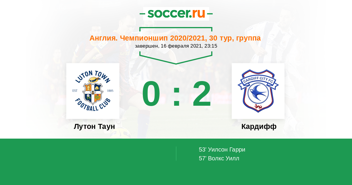Протокол матча Лутон Таун против Кардифф