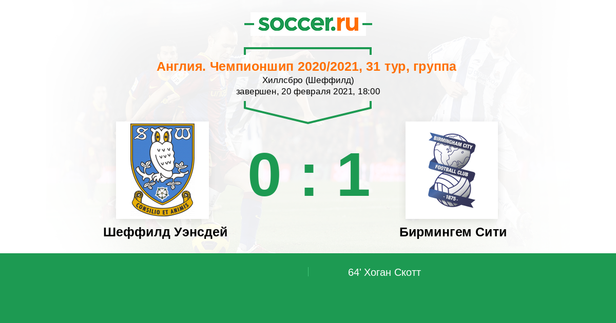 Протокол матча Шеффилд Уэнсдей против Бирмингем Сити