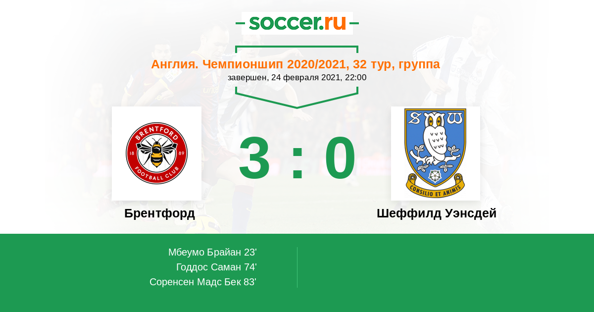Протокол матча Брентфорд против Шеффилд Уэнсдей