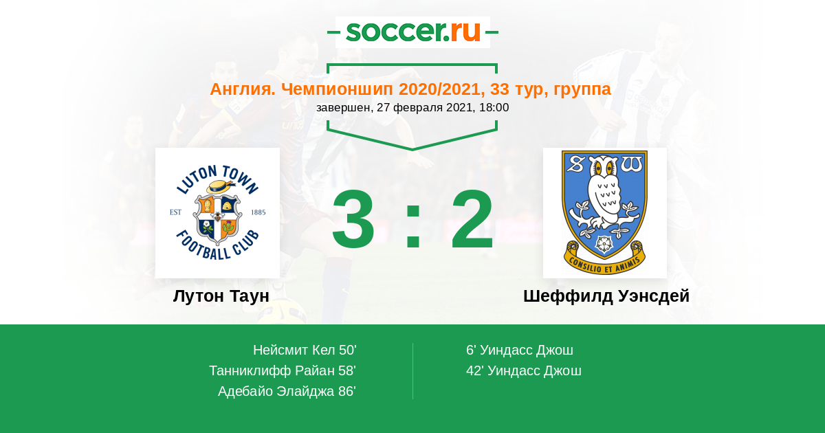 Протокол матча Лутон Таун против Шеффилд Уэнсдей